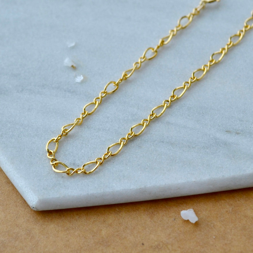 An elegant long and short chain anklet handmade just for you. Curvy loops and itty-bitty infinity links add just the right shimmer for a stroll in the surf or a trip around town. This custom chain ankle bracelet is wonderfully versatile -- wear it alone for a minimalist anklet, give a home to that cool flea market charm, or layer on for glimmering boho beach vibes.